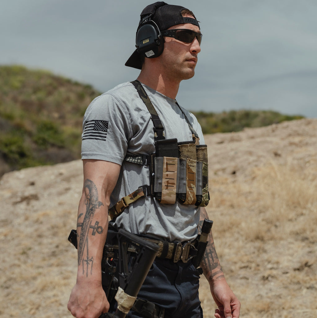 Easily converts from chest rig to PC placard.