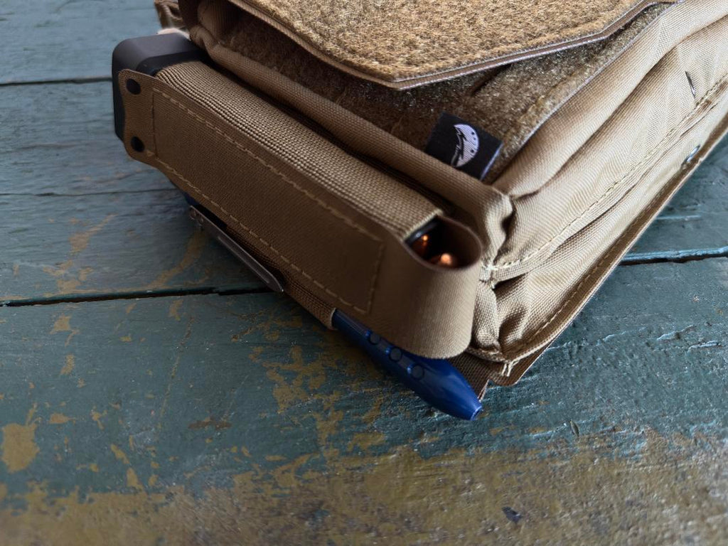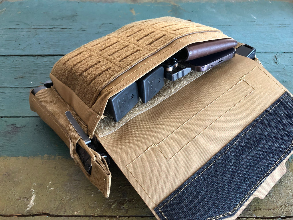 Using an smg insert in the front will allow for organization of full size pistol magazines, hand held light etc while keeping the flap installed.